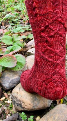 Skill Level: Intermediate; the sock includes basic top-down construction featuring a heel flap, short-row heel turn, and wedge toe; major cabling, textured stitches, and lots of charts. The ability to read a knitting chart is a must, although all symbols are clearly defined.