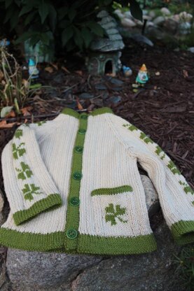This easy to knit sweater is worked from the bottom up in a 3x1 rib. Sleeves are worked flat in order to knit design, then seamed, joined to the body and continued as a raglan. The pocket is added as a patch pocket. The sweater has snap closures with buttons sewn over the top for interest.