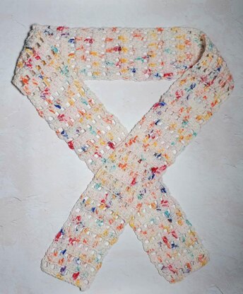 This one-skein “skinny scarf” works up quickly with a simple, two-row repeat pattern. This lace crochet scarf pattern was designed to meet the donation requirements of Handmade Especially for You, a non-profit organization that distributes comfort scarves to women who have survived abuse.