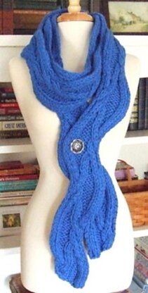 About the Design: The shaped cables in this scarf bring a quirky liveliness to a traditional cable stitch pattern. The cables undulate evenly to and fro, as if to create large S’s.