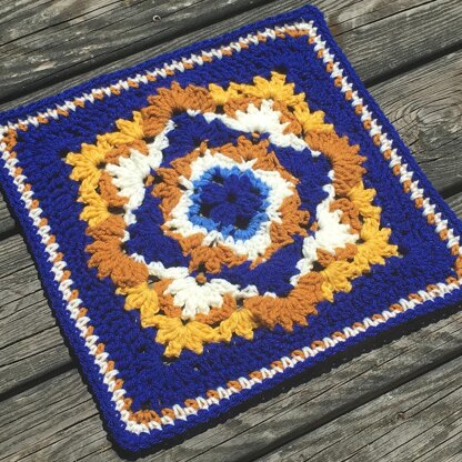Here is the fourth installment in the Talavera Tiles series, my afghan squares inspired by rustic Mexican tiles. This is a fun to stitch pattern that quickly changes from square to diamond and back to square. Narrow cluster stitch emphasizes the starburst effect.