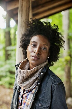 - Neck warmer knit with Brooklyn Tweed Loft held double in color Woodsmoke