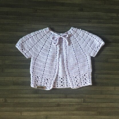 EVA CROCHET BABY CARDIGAN CROCHET PATTERN PDF - A pretty lacey cap sleeve baby cardigan. Perfect for over a wee summer dress or romper. Made seamless top down so no sewing of side seams.