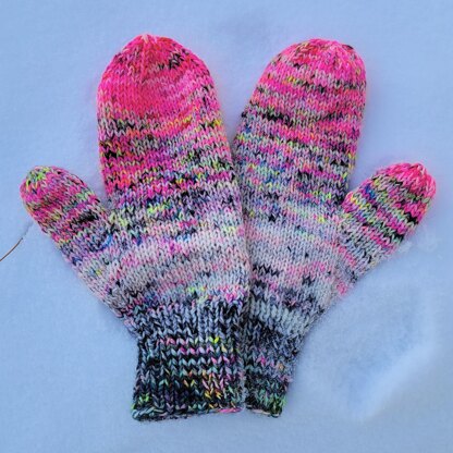 You will be holding two sock yarns together at all times, and will end up switching one out every seven rows. If your leftovers are a little over or under – Never Fear! You will still be able to get the same effect by switching 1/2-1 rows early or late. Just be sure the document what you do on one mitten to match the other!