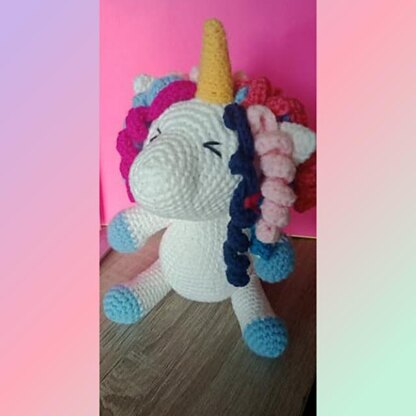 Do you believe in unicorns? My 6 year old is a total believer ! Unicorns may be mythical creatures on earth but in my childs heart they are as real as the rainbows she sees in the skies ! I hope this cute wee amigurumi Unicorn with adorable colourful ringlets captures your little girls hearts & minds as it has mine ! I'm told shes very snuggable & her ringlets make her a perfect sensory toy.