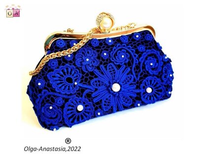 Evening blue lace bag 3 - crochet Irish lace