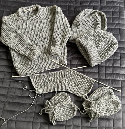 - I used yarn 250m per 100g ball any DK yard (22 Sts x 30 rows = 10x10 cm) is suitable. To knit the first two sizes of hats & gloves you need 1 ball