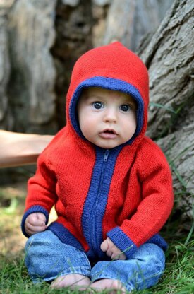 This pattern came from a desire for a simple, top-down hoodie with clean lines for easy toddler wear. In order to keep the fabric sleek, ribbing, garter and seed stitch have given way to hemmed edges. To keep the look of a basic hoodie this pattern features an optional zipper closure and front pockets. The decorative ribbon draw-string is not particularly functional, it just gives the sweater a little extra personality. The fingering weight yarn makes it a nice, light, versatile sweater to throw on for extra warmth.