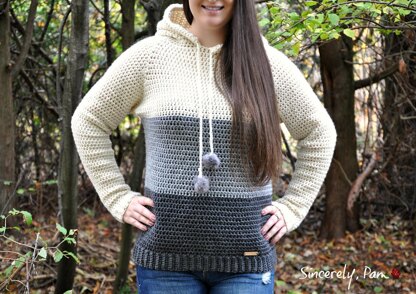 This Hoody is comfy, roomy and perfect for lounging around! The stitches used are sc and hdc. Although listed as intermediate, an advanced beginner who is comfortable with increases, decreases and working in the back loop can tackle this with confidence!