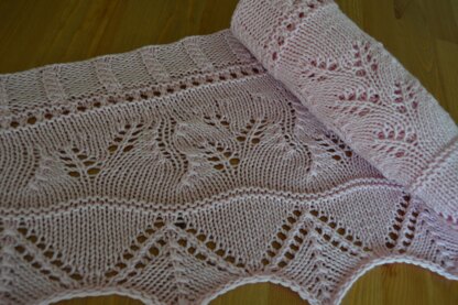 This sweet little scarf is worked with short rows to create the gentle arc in a combination of lace and textured patterns edged in a scalloped design. The piece is worked from the bottom up, in one piece, no seams!!!!!