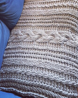 THIS IS A LOOP YARN FINGER KNITTING PATTERN. The Extra-Chunky Braid Cable Blanket is an Irish Aran/Celtic-inspired design with braid cables, rope cables and an extra-chunky braid cable in the centre. This pattern makes a very squishy, cozy blanket!