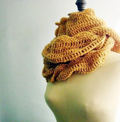 The pdf pattern for an extra large crocheted circle scarf with lovely edging. The file includes step by step instructions and photos. Difficulty: Easy. The pattern calls for approx. 200g light worsted yarn.