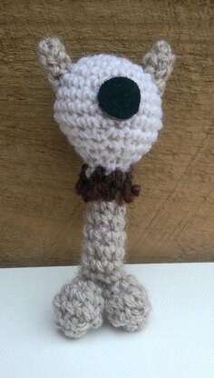 You can make him with: - 3.0 mm hook - 8ply acrylic yarn in white, light and dark brown. - stuffing - craft glue -black felt
