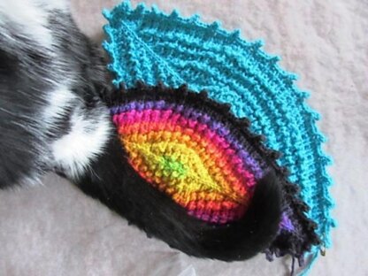 **Eyes of the Deranged Furballs ** is a 13" x 7" / 33 cm x 18 cm oval / eye shaped dishcloth made with an easy 3D relief stitch and framed with a lovely picot border. It can also double up as coaster or pot holder. It is written in one (1) colour and one (1) string, and suitable with self stripe yarn or colour work as preferred.