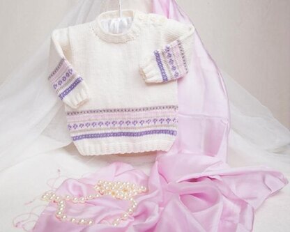 A sweet little jumper knitted in a luxury supersoft baby merino yarn that is machine washable. The fair isle design is simple to knit with instructions for the colourwork given in the pattern - no chart to follow! Change the colours to suit baby's wardrobe. For the chillier days, a textured gilet pattern comes with the jumper. Just pop on over the jumper to make a cosy duo.