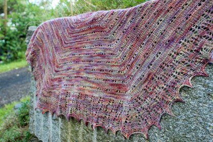 This simple yet elegant pattern was designed to showcase those magical variegated yarns. The shawl is adjustable, you can make as many repeats as desired. Charted and written-out instructions.
