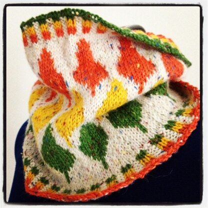 This is a fair-isle pattern for a cowl. Size could easily be adjusted by adding repeats for a larger cowl.