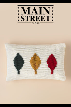 Hook up a gorgeous cushion cover for fall, with intarsia leaves worked into the main color as you work. If you haven't tried this technique before, you'll love it! Worked in Main Street Yarns Shiny + Soft, this is a cushion cover that will be soft and cozy but withstand everyday use on any sofa, bed or chair!