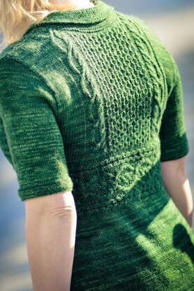 Birthed in Edinburgh, Scotland and inspired by Celtics and friendly chats in the pub, this cardigan synthesizes the familiar with the impulsive: tried and true cables and traditional stitches go off in unexpected directions and are creatively constructed to bring you a uniquely beautiful garment.