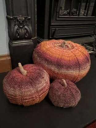 The size of the finished pumpkins will depend on the yarn used as well as the needle size.
