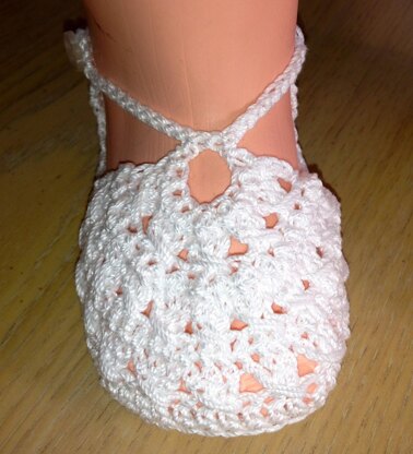 These shoes are so elegant. Make them in a fancy thread for a little holiday glamour or in a shimmery pearl or white for a Baptism or Christening. Very versatile – make them your own!