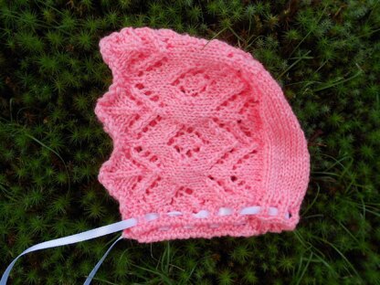 Knit this charming baby bonnet in no time for that sweet little one! The pattern features a lovely fantasy lace pattern that works up quickly. The brim is worked first, then the back is knitted plain, and then sewn to the sides for an easy finish. The bonnet uses baby or sport weight yarn that is soft for your baby’s head. There is a chart and written directions to knit this bonnet! There are 2 sizes available in the pattern.