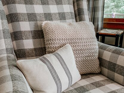 The Farmhouse Chic Throw Pillow features a simple, classic design and can provide a touch of rustic style with a modern twist to your home. Made with Lion Brand's Re-Spun Thick & Quick yarn, this pillow works up incredibly fast and makes for a perfect DIY weekend project. This is a beginner crochet pattern and the techniques used to create this pillow cover are outlined below.