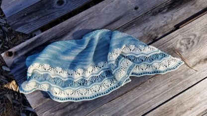 Drawing its name from the hymn “For All the Saints” by William Walsham How and inspired by ice-blue water lapping against a snowy polar shore, Farthest Coast is a generous crescent shawlette knit from the top down. Hand-dyed yarn shines best in this accessory; stripes, simple lace, and squishy garter stitch allow colors to melt, shift, and blend together. Sample shown was knit with approximately 215 yards of Knit Picks Hawthorne Multi Fingering and 160 yards of Patons Kroy Sock.