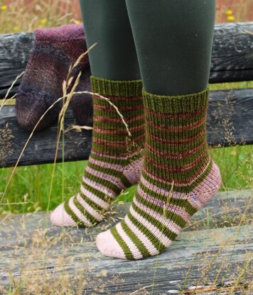 The pattern provides instructions to make simple Vanilla socks, striped socks or contrasting heel, toe & cuff.