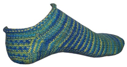 Note from Lynn: this pattern has been on the web in one size (ladies' US shoe 5), for free, for several years and will continue to be available in that format. This version is called Mom's Fast Florida Footies; Mom wears a shoe size US 5.