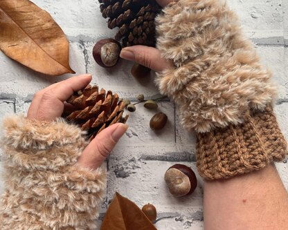 Crochet your own super cosy faux fur fingerless gloves with this beginner friendly crochet pattern.