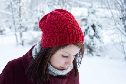 A slouchy hat with reversible stitch pattern and short-row shaped ribbing.