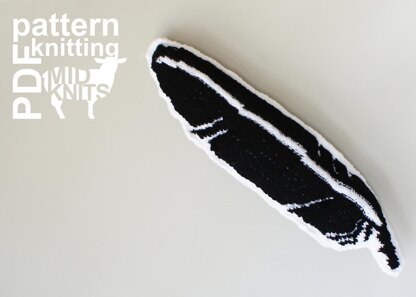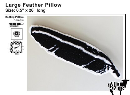 Knit your own black and white 26" long feather pillow. This pattern uses stockinette stitch, with stranded colorwork techniques, to create a fun and modern feather. Knit with #4 worsted weight acrylic yarn, this cushion is durable and easily washable. These instructions are a combination of written and colorwork charts, making it an easy to follow how-to.