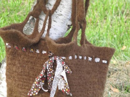 Photos: brown shows the large version, long handles, using vintage fabric for the trim. Red shows the small version, short handles, with 1" wide ribbon for trim.
