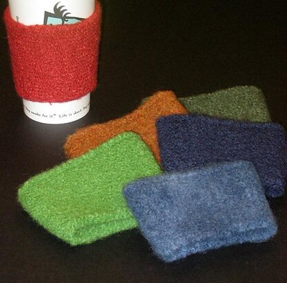 This felted coffee cozy is designed to fit most commercial coffee cups that you would get a coffee shop.