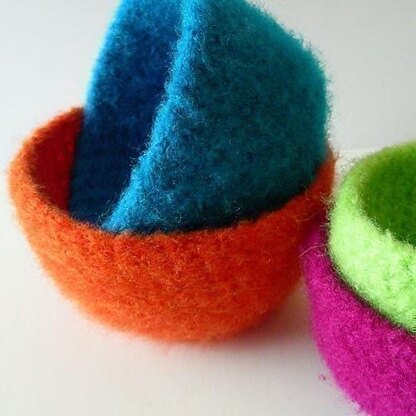 These Felted Nesting Bowls are easy to crochet and work up super fast. They are a great way to use up scraps of wool, and make an excellent gift.