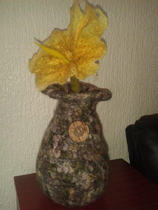 Perfect for showing off silk, dried or felt flowers, this vase can also be used with a glass liner to display fresh flowers. Leave plain or decorate with beads, buttons and crocheted flowers, or experiment with variegated and self-striping yarns.