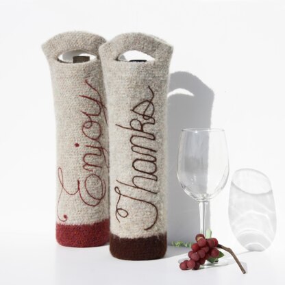 Finished gift bag measures 27 cm (10 1/2") in circumference and 34 cm (13 1/2") high. Fits most 750 ml bottles of wine.