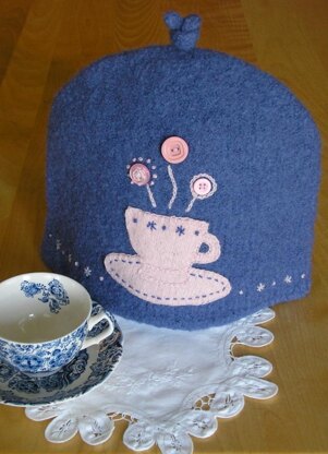 Keep your pot of tea piping hot with a felted cozy. The finished size is about 13-inches wide by 10-inches high. The cozy pattern fits a 6-cup tea pot comfortably.
