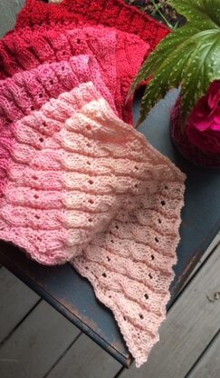 A simple cable and lace pattern worked at a 45 degree angle to create a pretty scarf that highlights your favorite gradient.