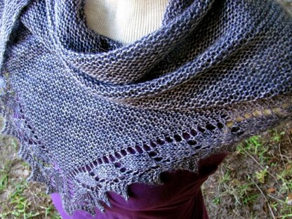 This shawlette utilizes short-rows to achieve the shaping along the top edge. The sample shawlette is 70" wide and 22" deep after blocking.