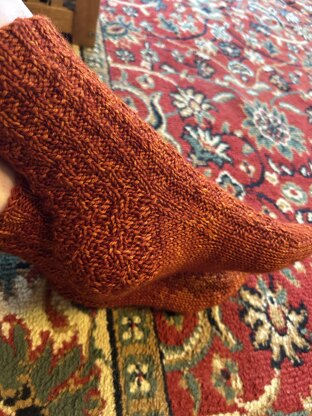 These squishy textured socks are warm and more interesting than a plain boot sock. A simple pattern gives you a fancy-looking result, with the pattern reflected on the second sock.