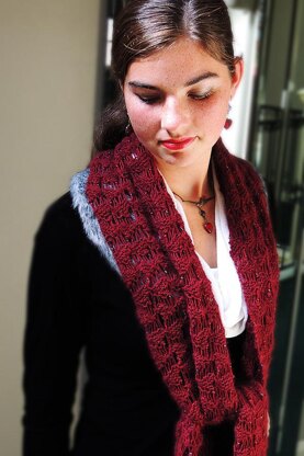 “Fern Frost" is a scarf that celebrates the hey-day of the Golden Age of Hollywood. It was a time awash with feminine glamour, beauty, and elegance. It was a time for the femme fatale, and fur. The modern knitter wishing to enjoy some vintage glam can also have that “Touch of Mink," with this luscious beaded scarf. It features a sumptuous yarn from Lotus Yarns – Mimi, made from 100% mink. I used 2 skeins of 330 yds each in colorway - Merlot.