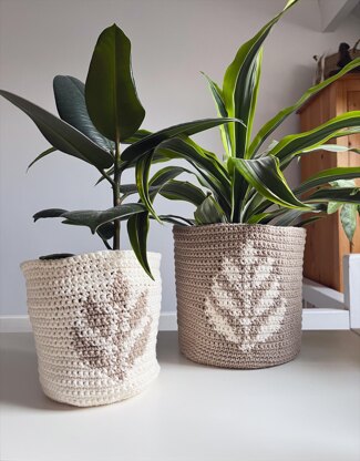 PDF download of the Fern Plant Pots crochet pattern. **Please note this is a digital file download and not a finished item** Create this modern, minimal crochet plant pot for your home. Available in two sizes: - Small pot - 15.5 cm tall x 13.5 cm diameter - Large pot - 18.5 cm tall x 18 cm diameter Using Aran weight cotton yarn and a 5mm hook. This pattern is written in UK crochet terms, but includes a translation and chart to follow for colour changes.