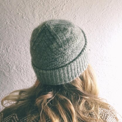 The Fernfrost hat is knit from the bottom up with a triple folded brim and a subtle texture inspired by delicate fernfrost on glass.