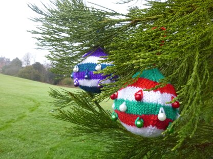 This is a great project for using up some of the leftover yarn in your stash, since each bauble only needs a small amount of yarn per colour. Alternatively, buy 3 50g skeins of DK yarn in your favourite colours and knit a matching set. These vibrant striped baubles are sure to catch the eye, with a finished size of 9.5cm in diameter. Uniquely, the beads are knitted into the bauble rather than sewn on at the end, and they add an element of charm and personality to your bauble. They are also fairly quick to make up: once you get the hang of the specialised Bead Stitch, you could easily finish one in a cosy evening on the couch.
