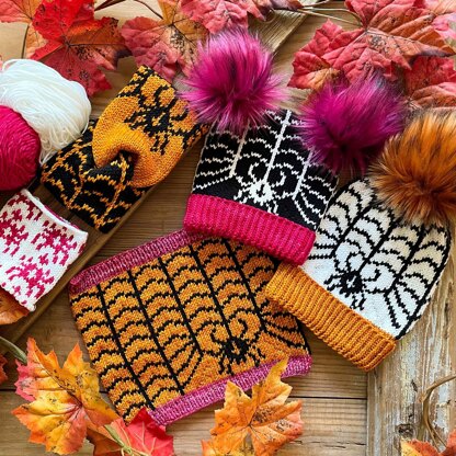 The Fiber Web Collection is such a fun knit. The Fiber Web Beanie pattern comes in three sizes, from baby to adult and two different decrease styles: fitted beanie and kitty ears bind off. This worsted weight pattern has options for folded or single brim. The pattern includes a chart and video instructions on how to read a chart and the the best part; the color combinations are endless.
