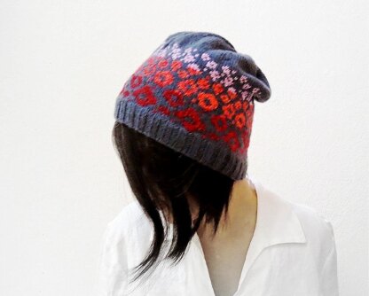 A fun colorwork hat with abstract flowers motif