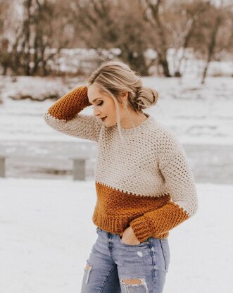 The Fifty Below color-block pullover is from my book, Modern Crochet Sweaters: 20 Chic Designs for Everyday Wear.