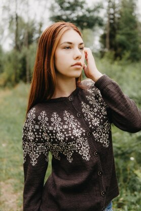 Techniques used: Trapping floats, short rows, backwards loop cast-on, steeking, one-row buttonholes.